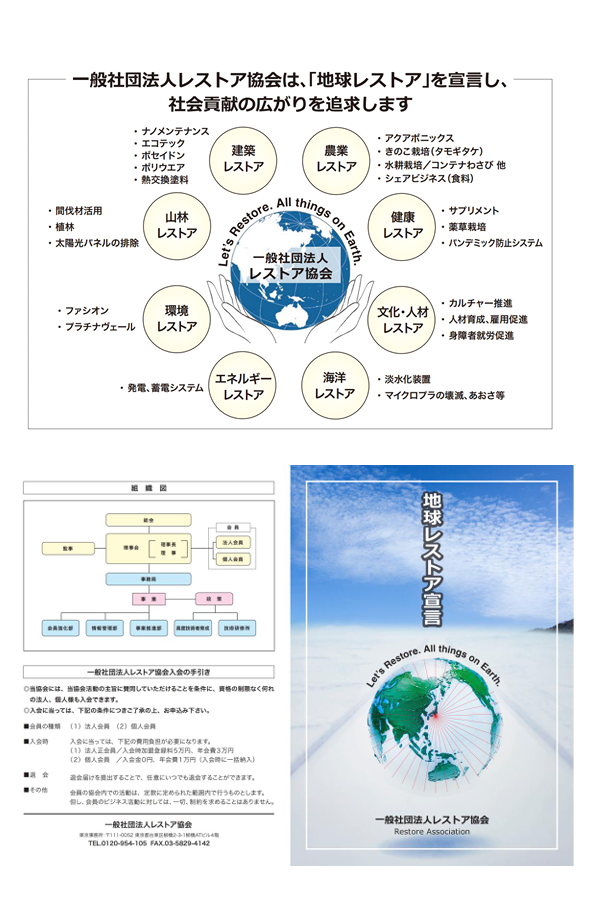 先端技術を駆使して、宇宙から見た地球を「レストア」基へ戻す働きを推進す