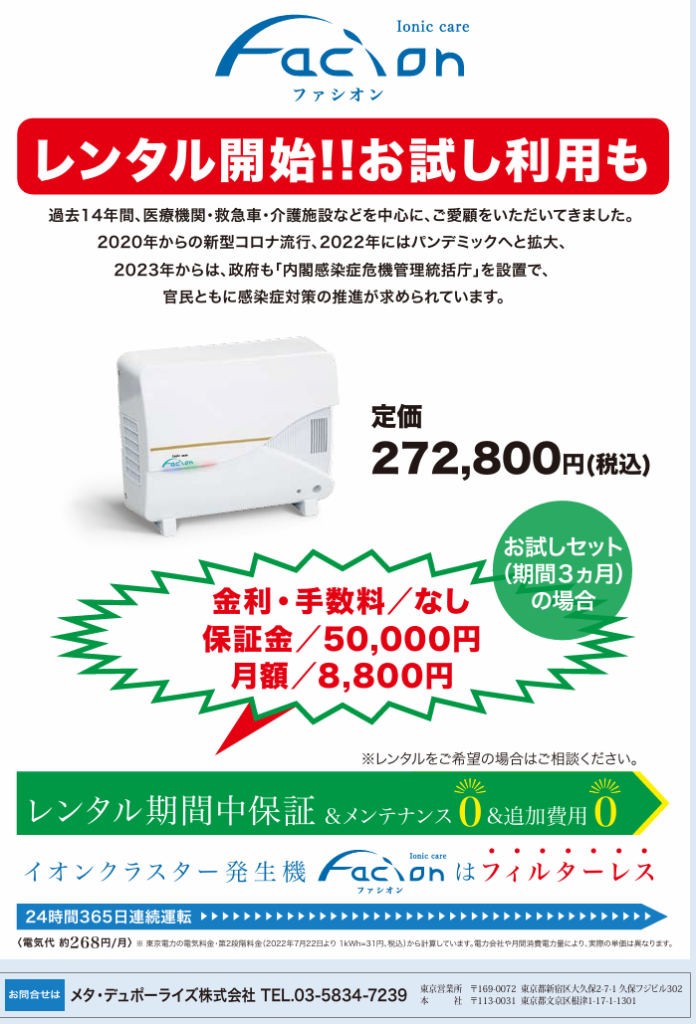 ファシオンは、医療機関や高齢者施設、保育所などに対して8000台以上の販売実績があります。