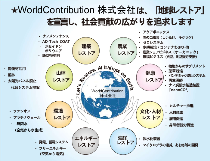 この倶楽部の趣旨は、WorldContribution 株式会社の経営理念であります世界貢献を皆の力で実現する8つのカテゴリーの実現を目指すことにあります。